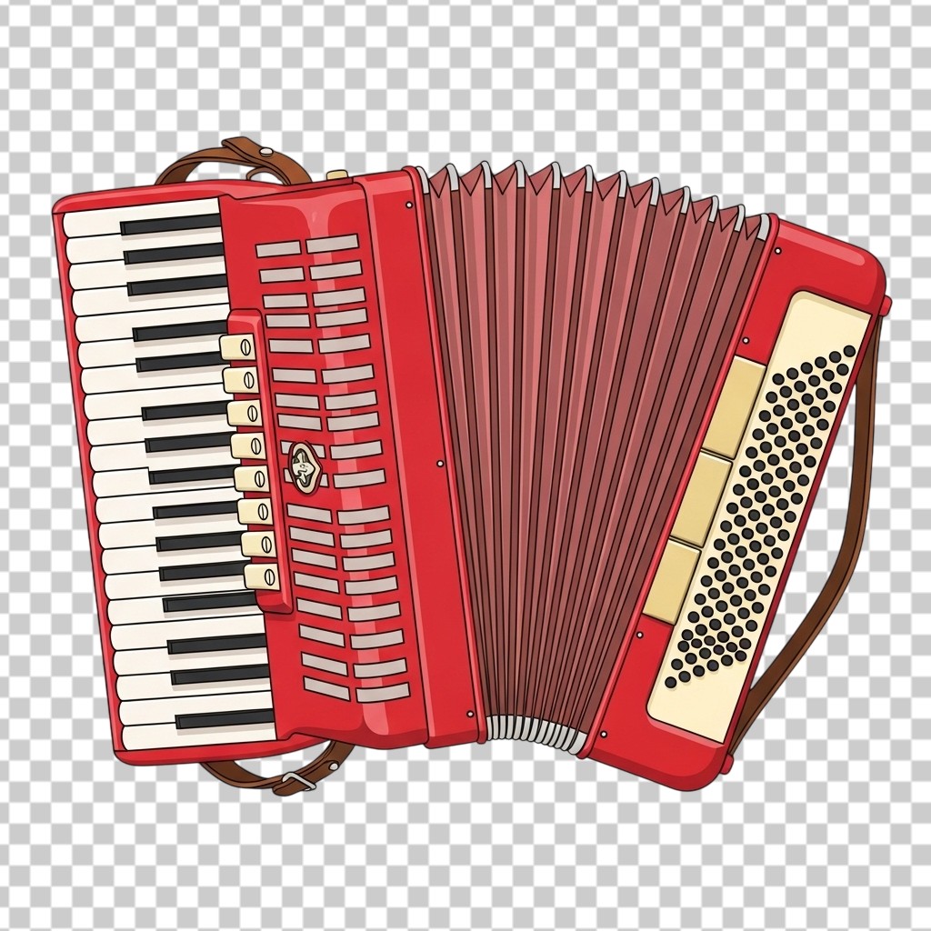 Red and White Musical Accordion Instrument Illustration PNG Transparent Background
