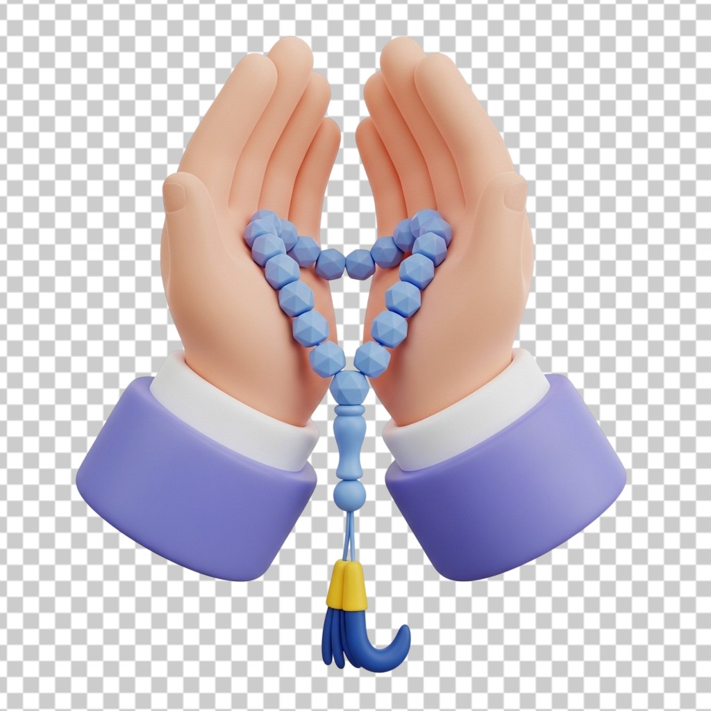 3D Hands in Prayer Holding Tasbih Islamic Prayer Beads PNG Transparent Background