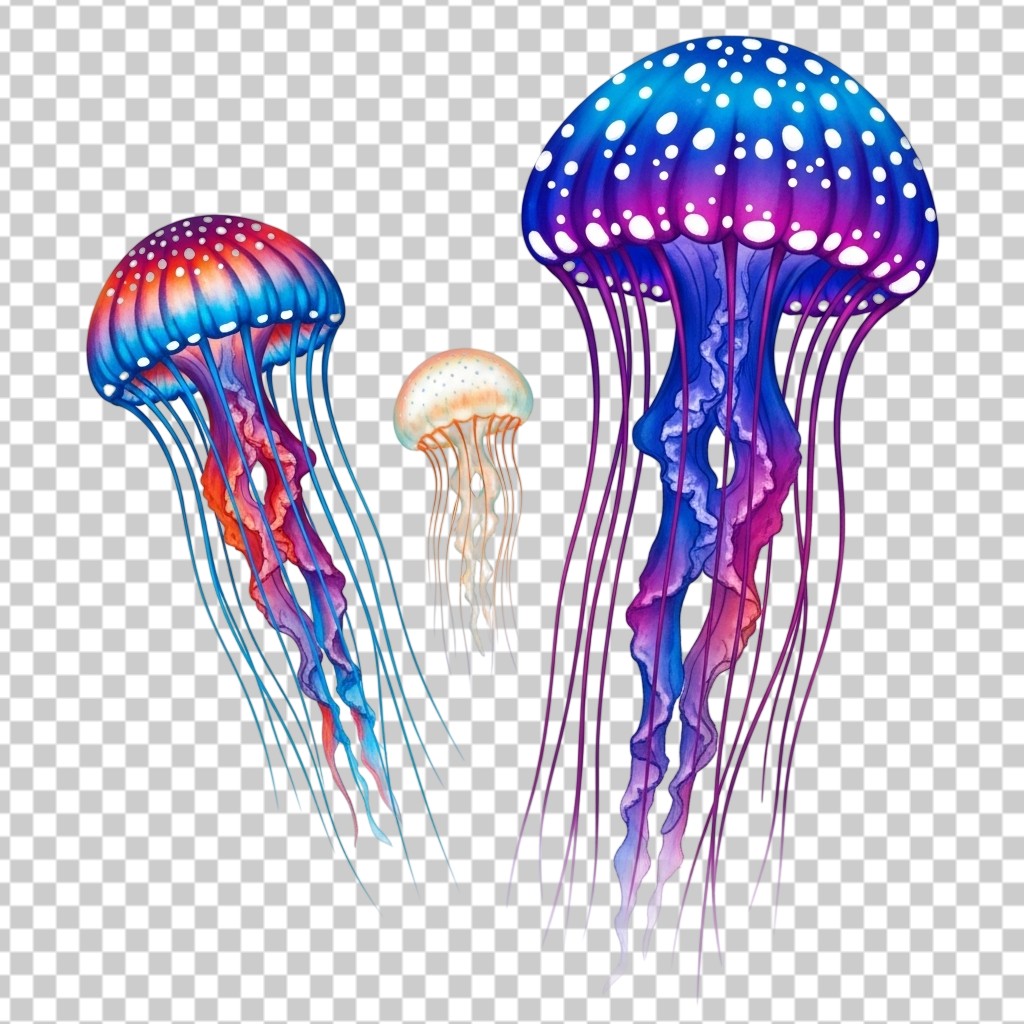 Colorful Bioluminescent Sea Jellyfish Underwater Illustration PNG Transparent Background