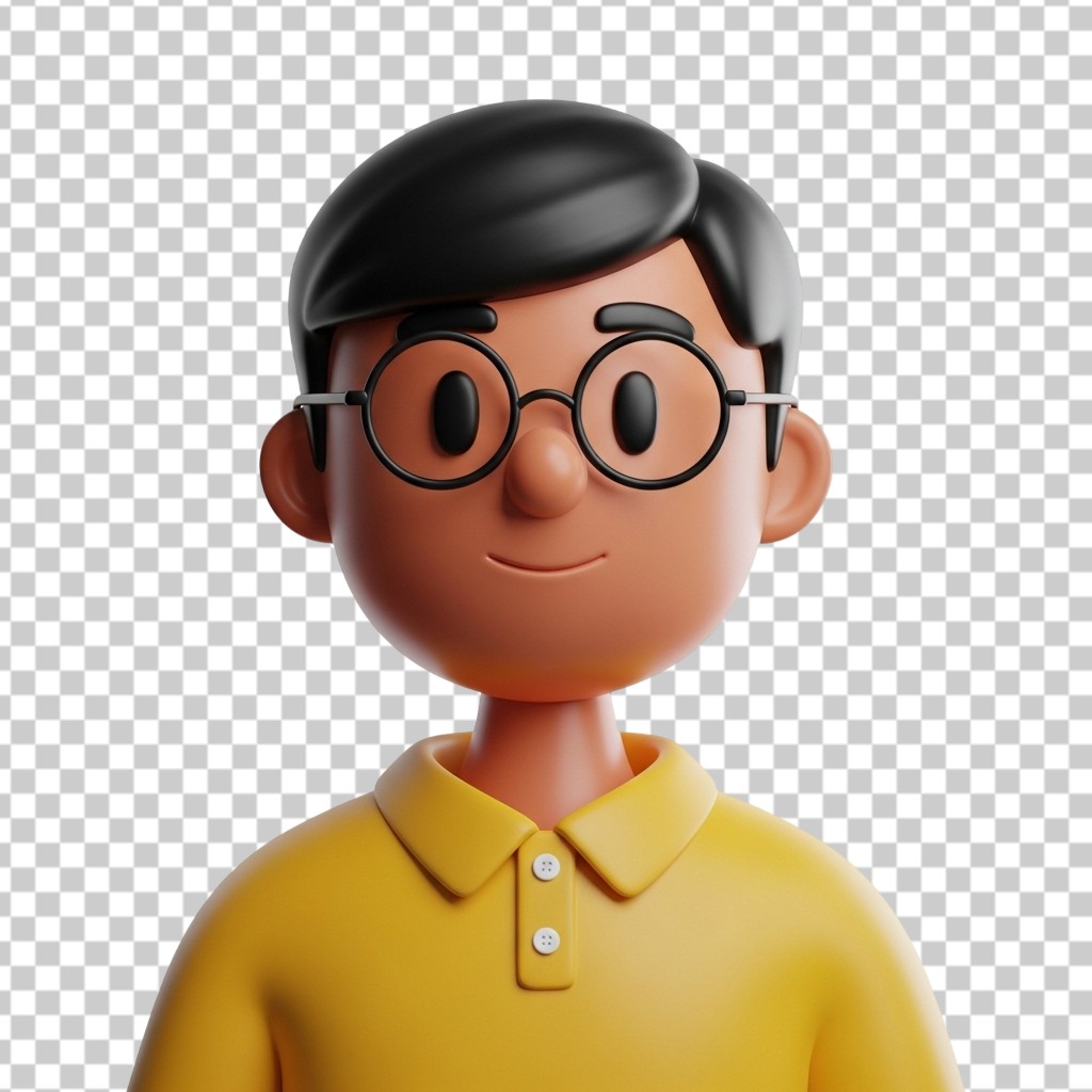 Young Asian Man Avatar Wearing Glasses and Yellow Polo Shirt PNG Transparent Background
