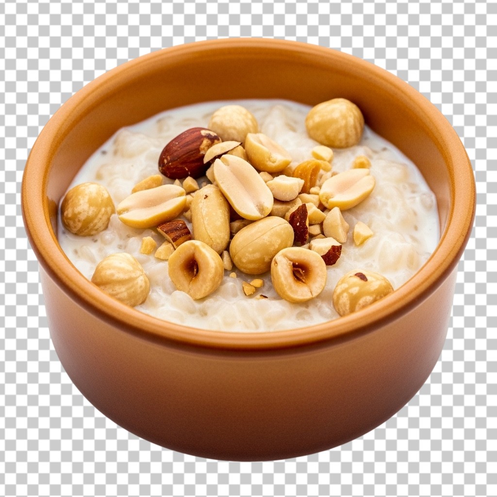Healthy Bowl of Oatmeal Porridge Topped with Hazelnuts PNG Transparent Background
