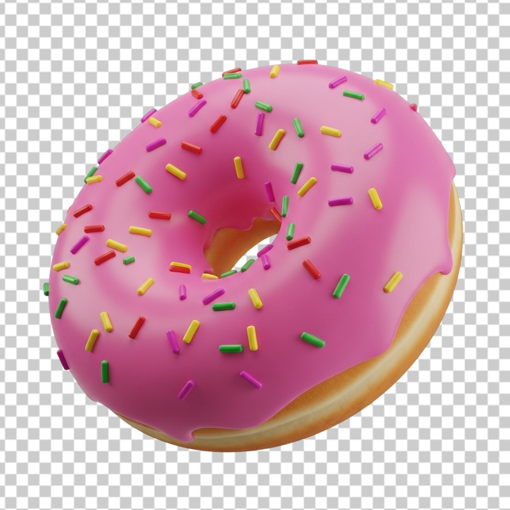 3D Delicious Pink Frosted Donut with Colorful Sprinkles PNG Transparent Background