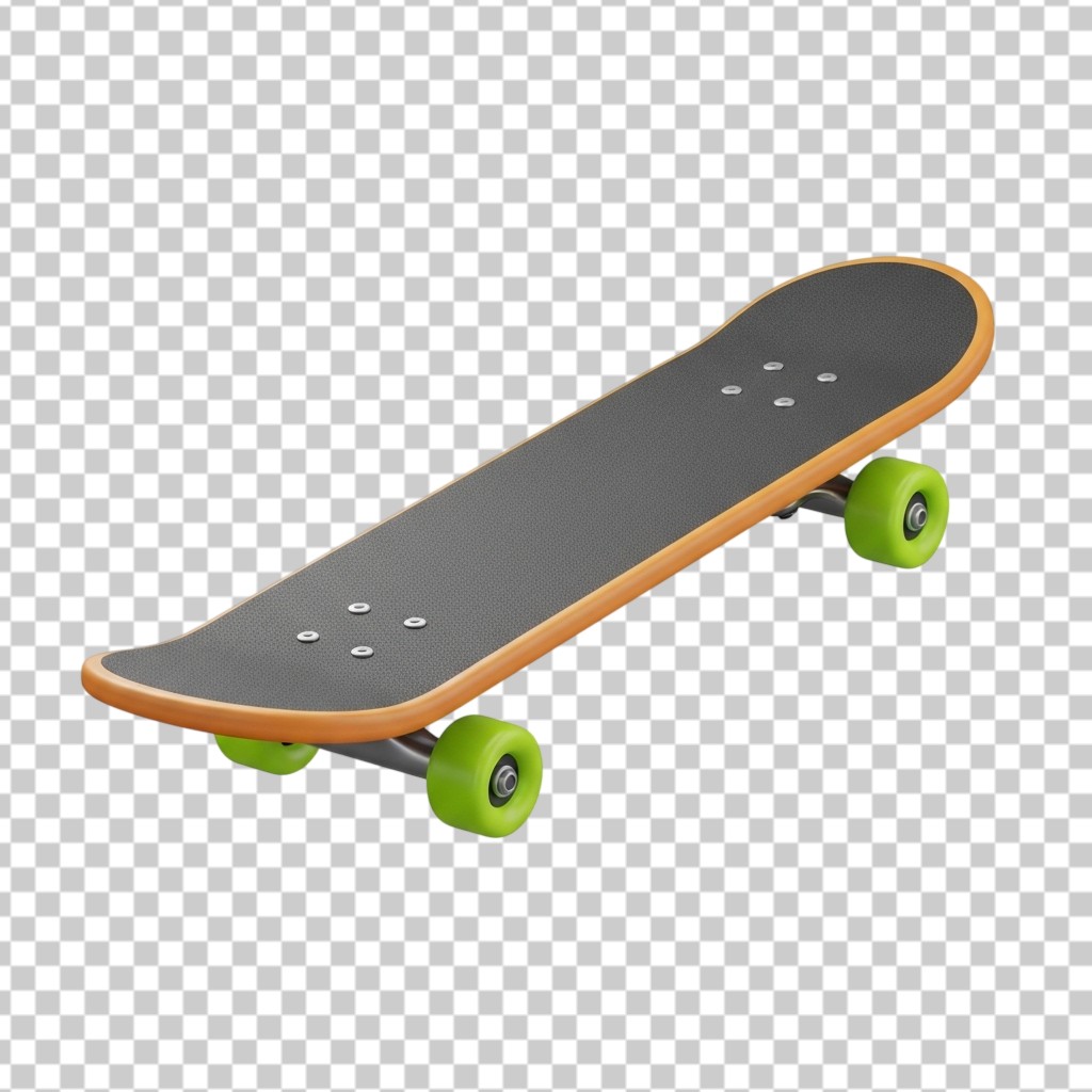 3D Black Skateboard with Green Wheels PNG Transparent Background