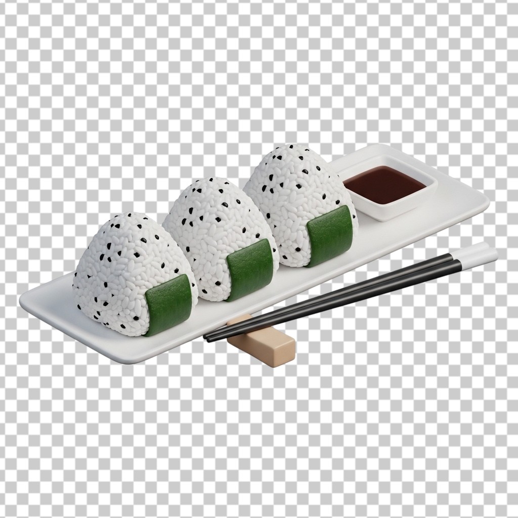 3D Japanese Food Onigiri Rice Balls with Soy Sauce PNG Transparent Background
