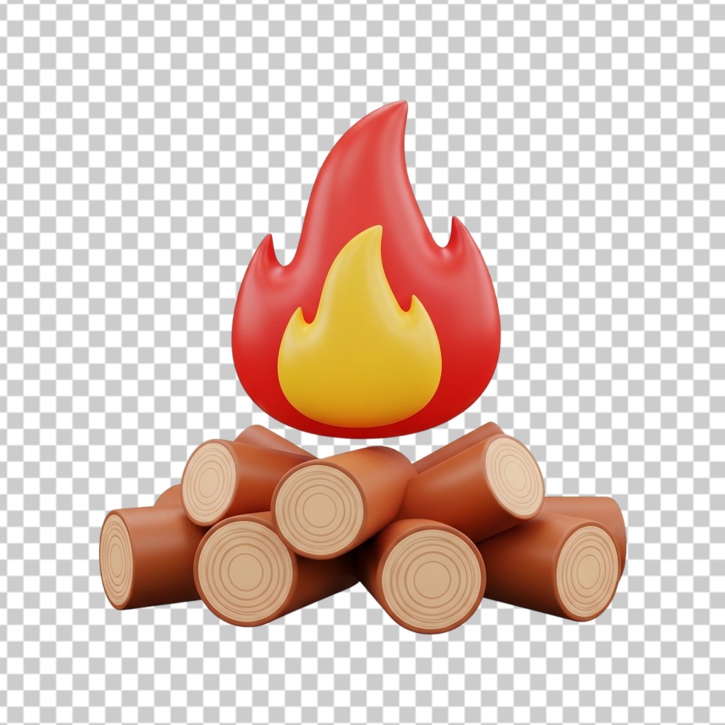 3D Outdoor Campfire with Burning Wood Logs PNG Transparent Background