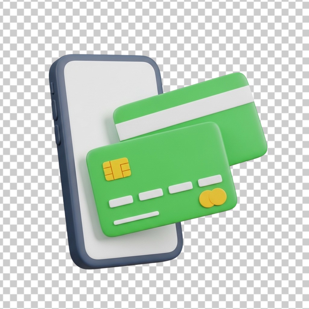 3D Smartphone with Credit Cards for Mobile Payments PNG Transparent Background