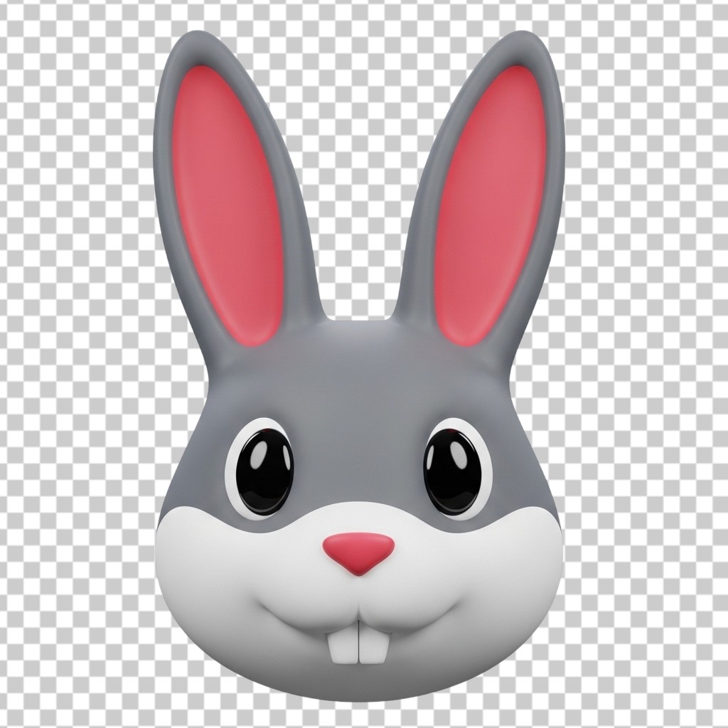 3D Cute Rabbit Bunny Head Animal Character Mascot PNG Transparent Background