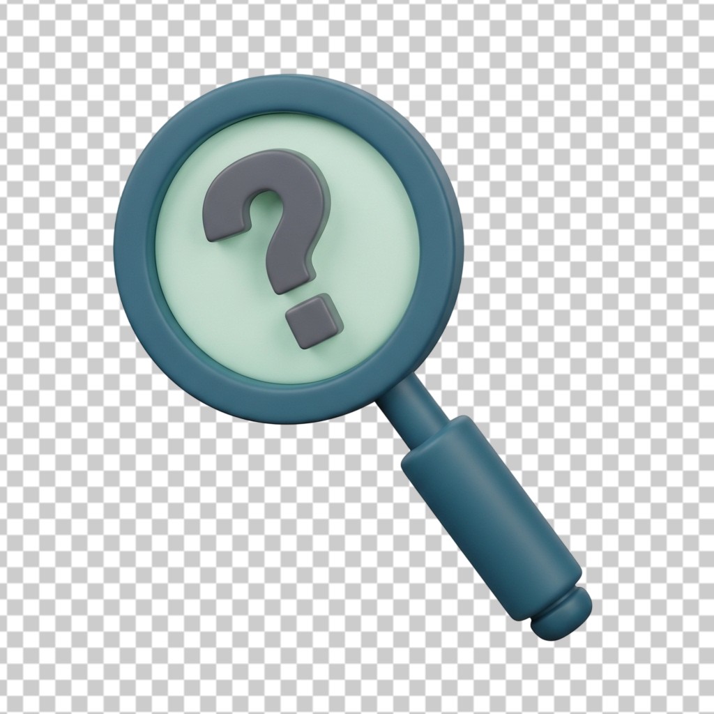 3D Blue Magnifying Glass with Question Mark Search Icon PNG Transparent Background