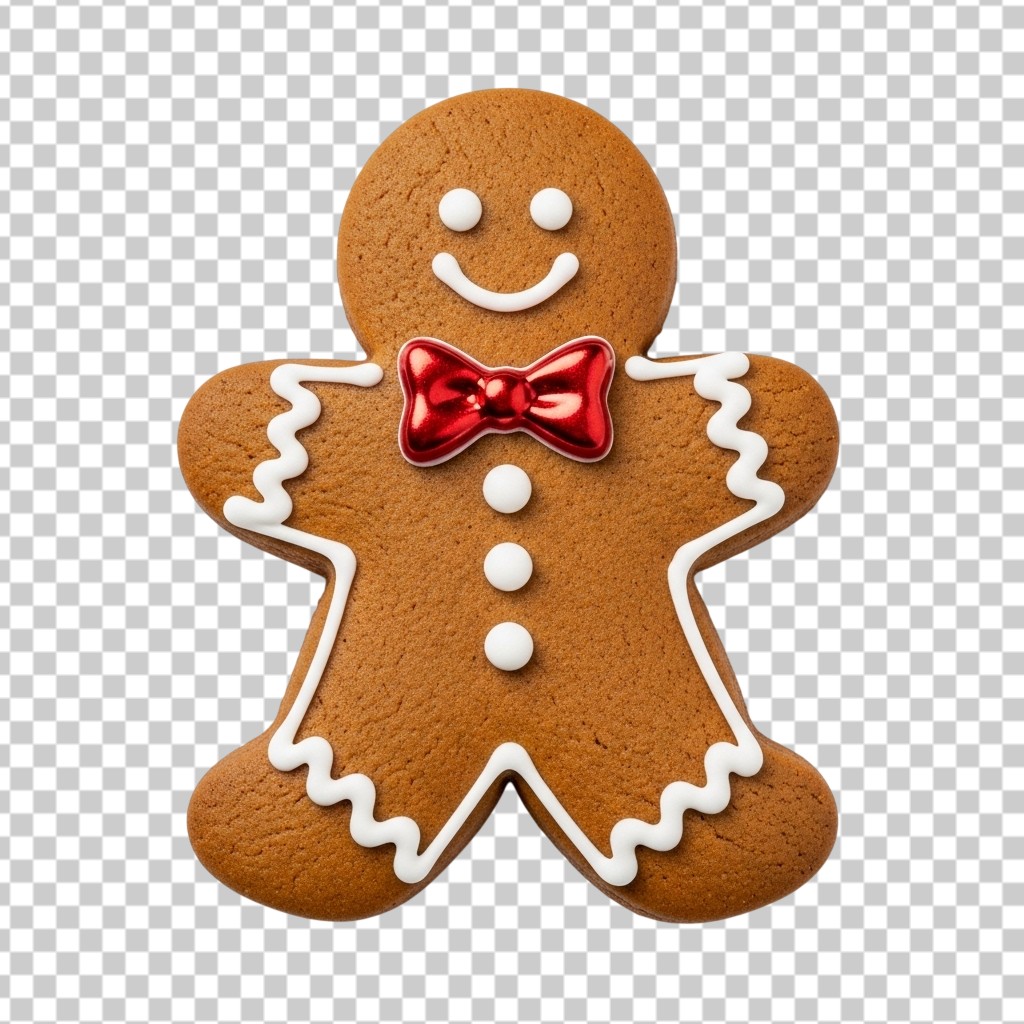 Gingerbread Man Cookie with Red Bow Tie PNG Transparent Background