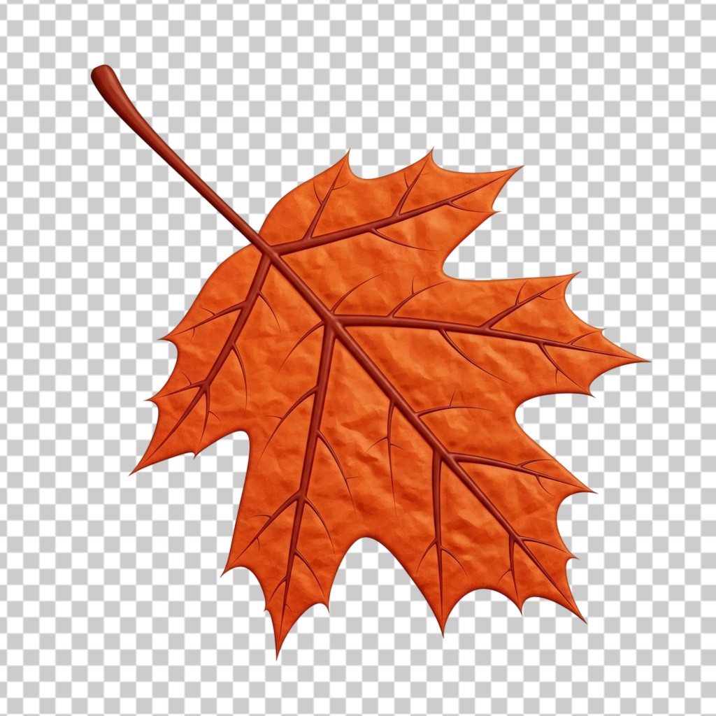 Vibrant Orange Autumn Maple Leaf 3D Nature Element PNG Transparent Background