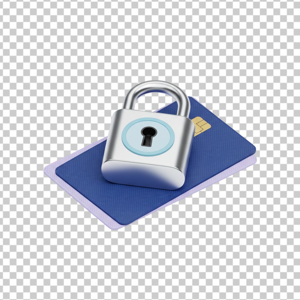 3D Secure Payment Illustration with Padlock and Smart Card PNG Transparent Background