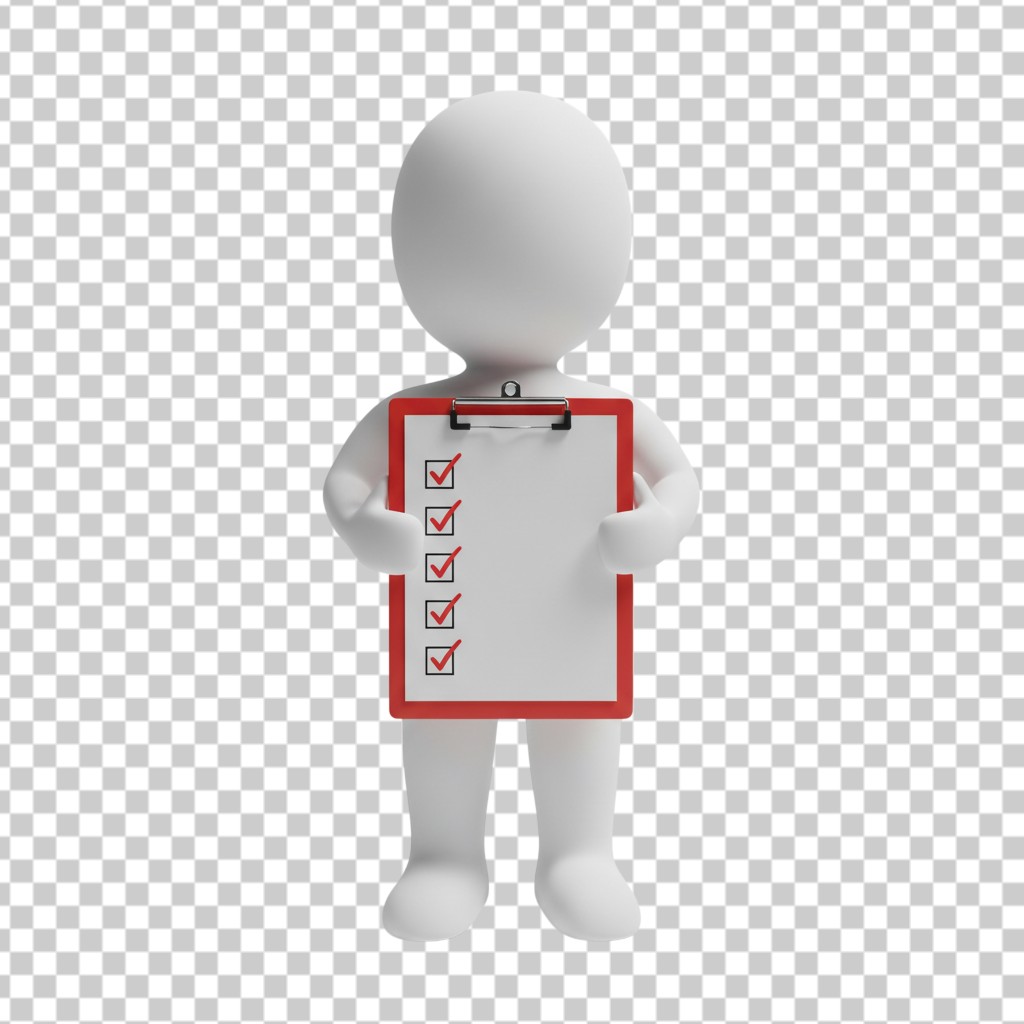 3D Small Person Holding a Red Checklist Clipboard PNG Transparent Background