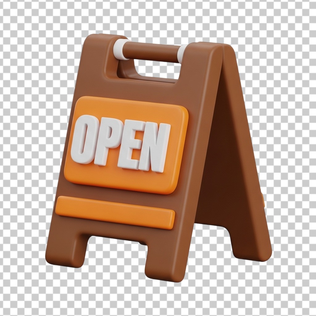 3D Wooden Open Sign Board for Retail Shops PNG Transparent Background