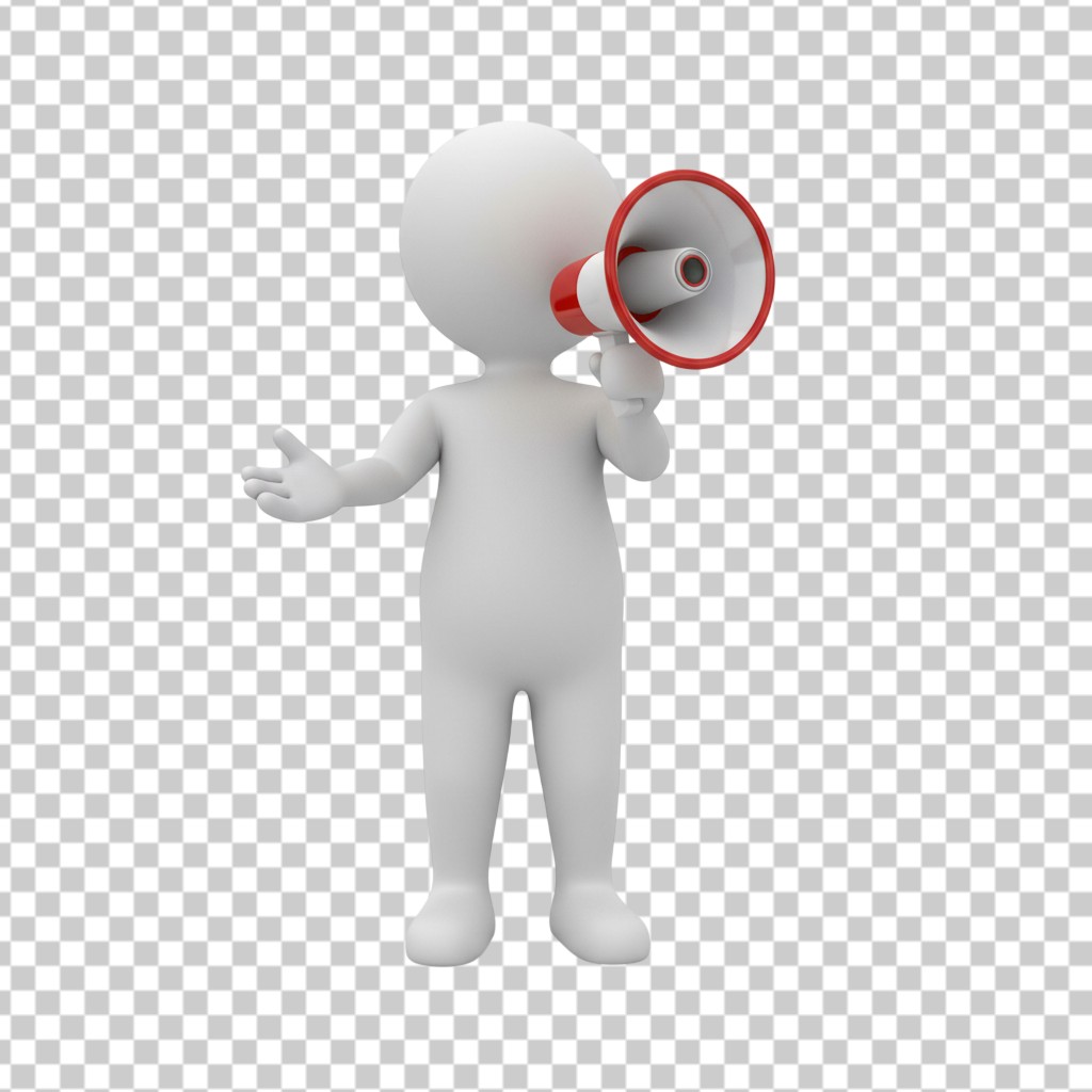 3D Small Person Speaking into a Red Megaphone PNG Transparent Background