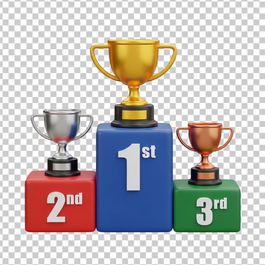 3D Winner Trophy Podium with 1st 2nd and 3rd Places PNG Transparent Background