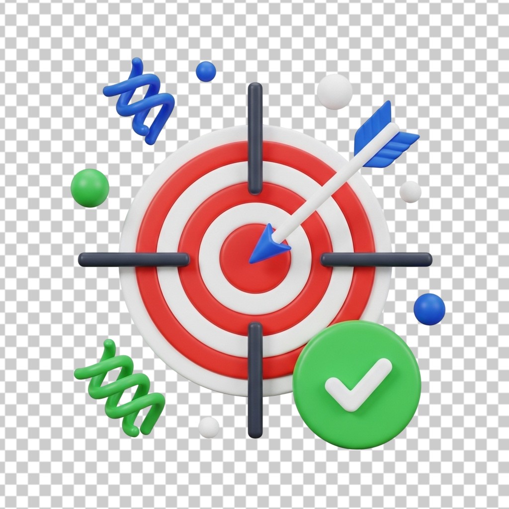 3D Business Strategy Target with DNA and Checkmark Icons PNG Transparent Background