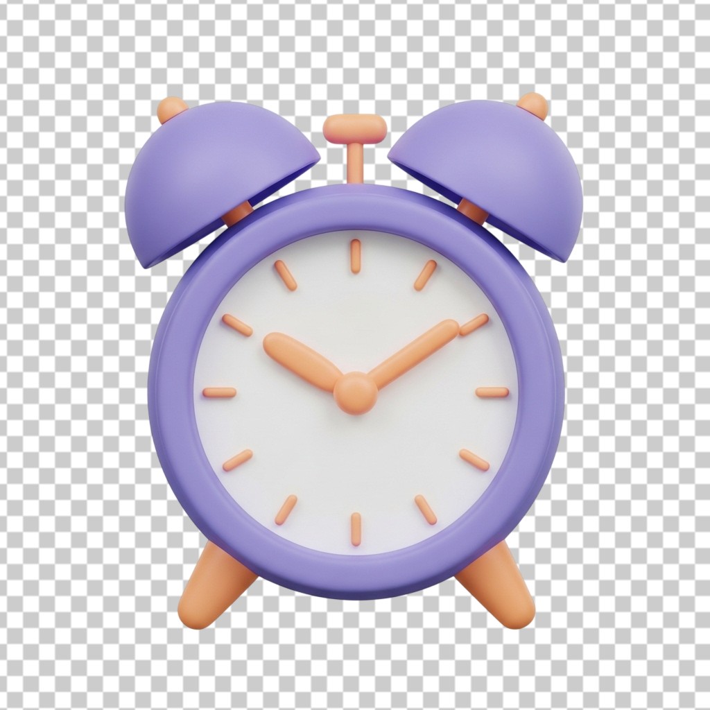 3D Purple Analog Alarm Clock with Twin Bells PNG Transparent Background