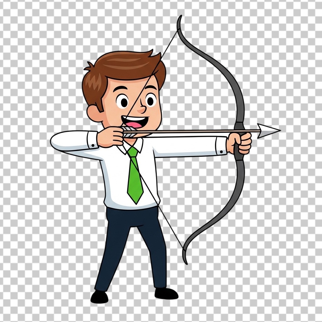 Businessman Character Aiming with Bow and Arrow for Goal Achievement PNG Transparent Background