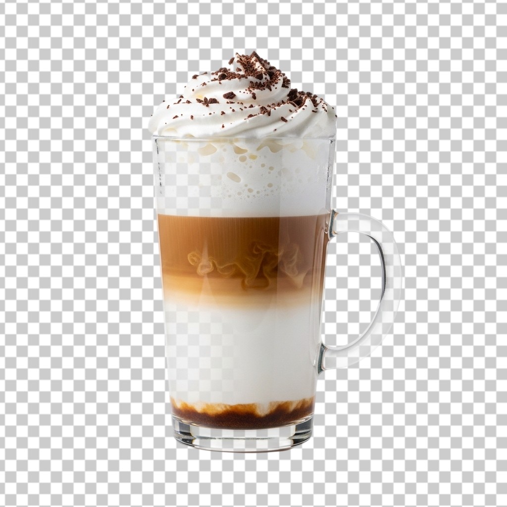 Tall Glass of Layered Iced Coffee Latte PNG Transparent Background