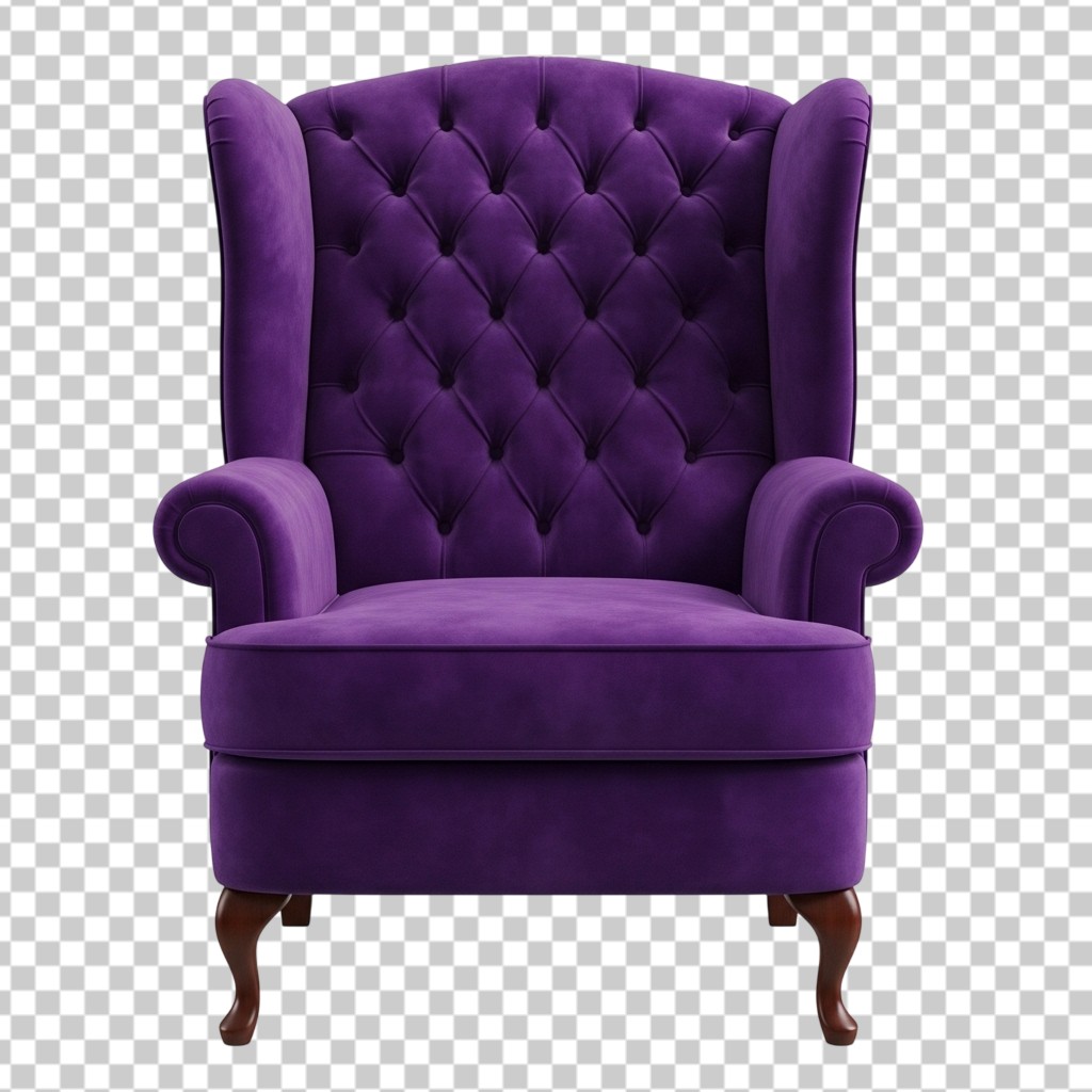 Luxury Purple Tufted Velvet Wingback Chair PNG Transparent Background