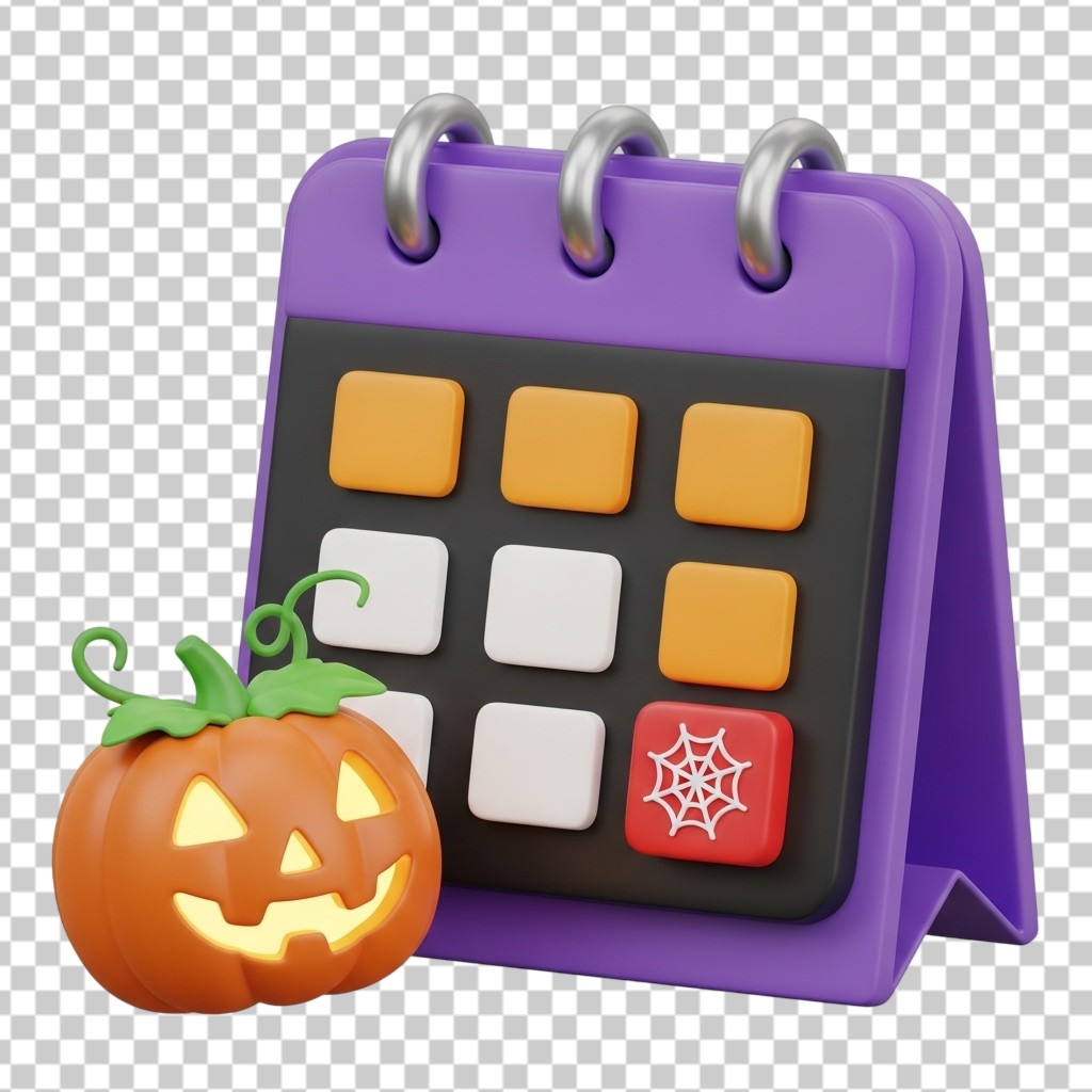 3D Halloween Calendar with Spooky Pumpkin PNG Transparent Background
