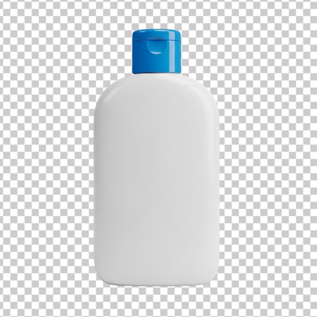 Minimalist White Plastic Bottle with Blue Cap PNG Transparent Background