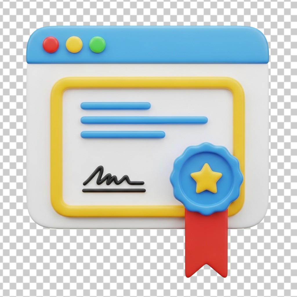 Digital Graduation Certificate with Blue Ribbon Star Medal 3D PNG Transparent Background