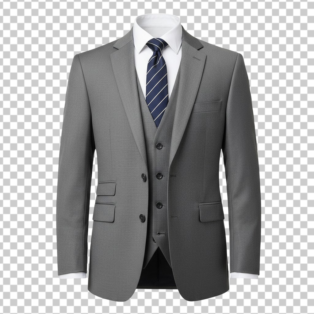 Classic Grey Three Piece Business Suit Ghost Mannequin PNG Transparent Background,Business