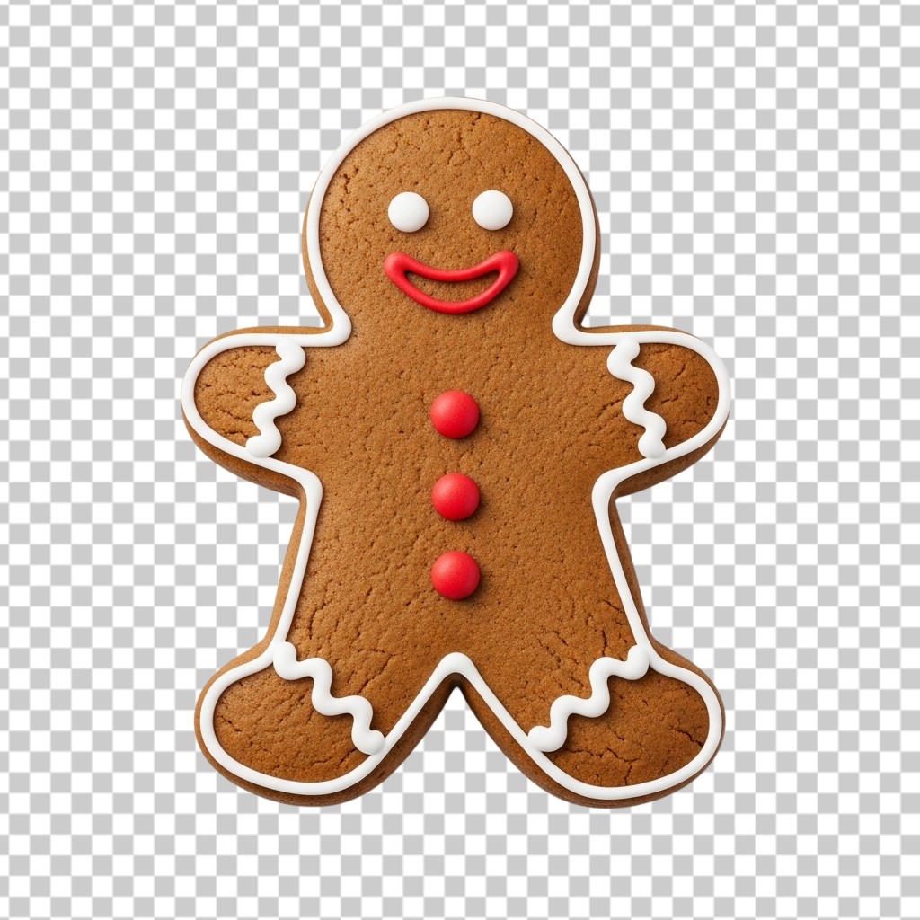 Traditional Christmas Gingerbread Man Cookie with Icing Details PNG Transparent Background