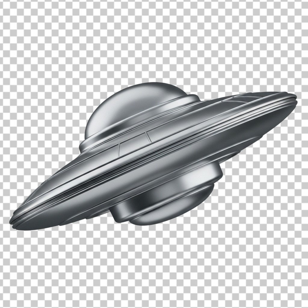 Metallic UFO Alien Spaceship Flying Saucer Illustration PNG Transparent Background