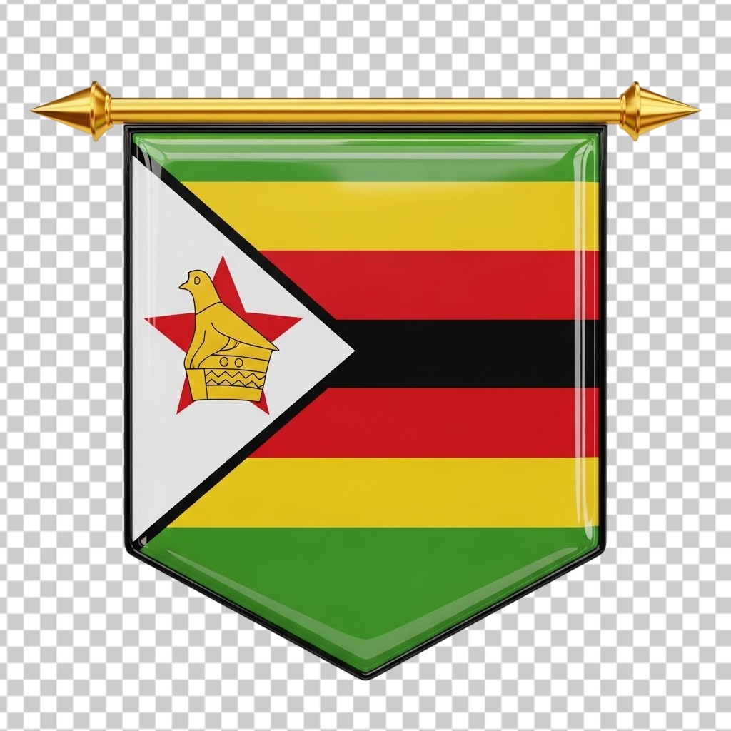 3D National Hanging Flag of Zimbabwe PNG Transparent Background