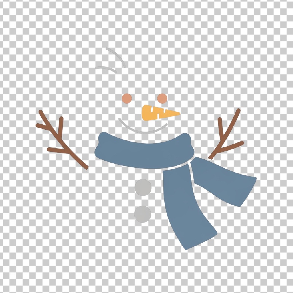Minimalist Snowman Illustration Wearing a Blue Scarf and Hat PNG Transparent Background