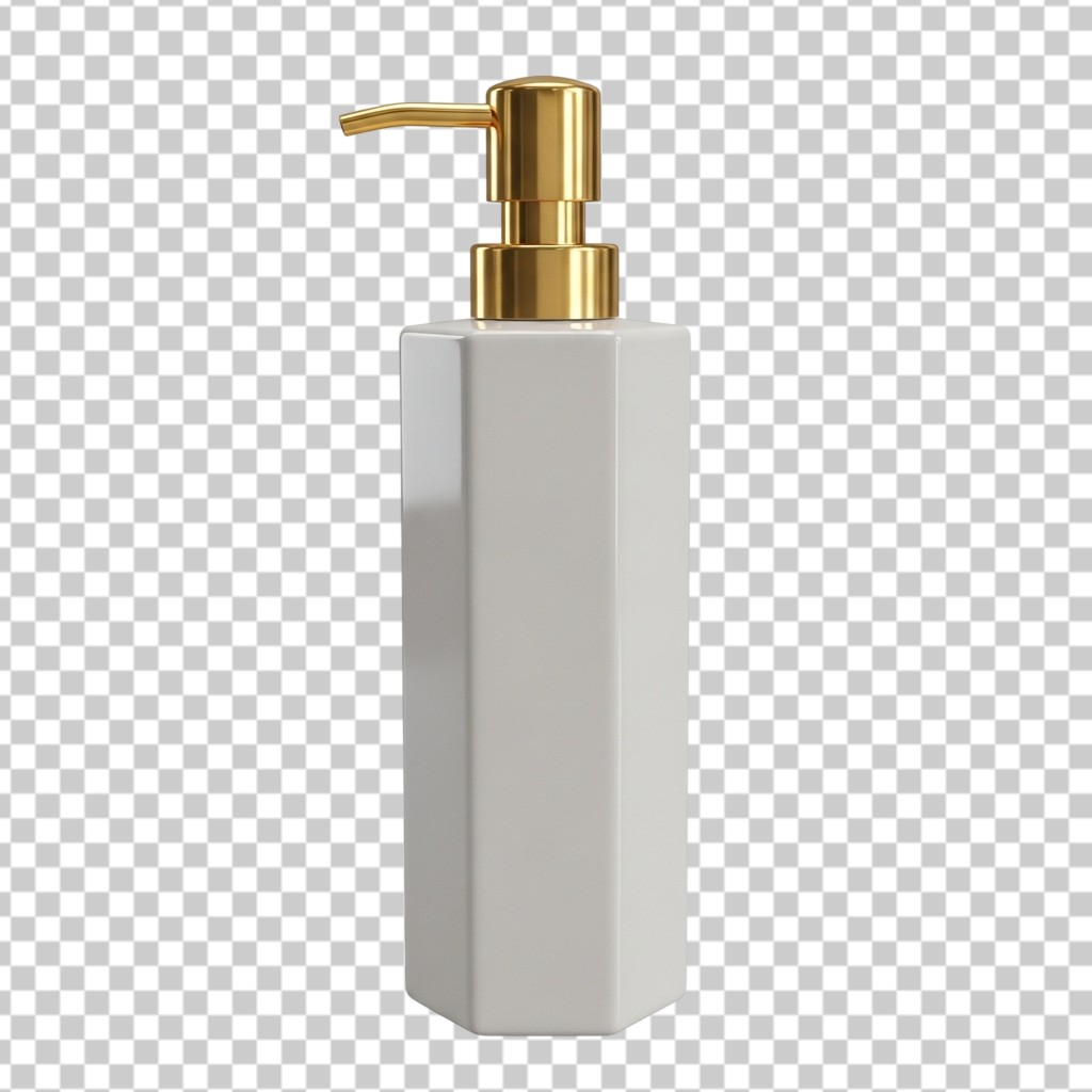 Elegant White Marble Texture Soap Dispenser with Gold Pump PNG Transparent Background