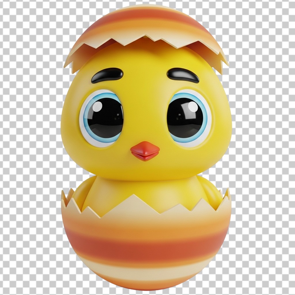 3D Cute Baby Chick Character Hatching from Egg PNG Transparent Background