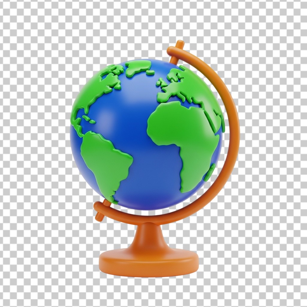 3D World Globe Map on Orange Stand Geography Icon PNG Transparent Background