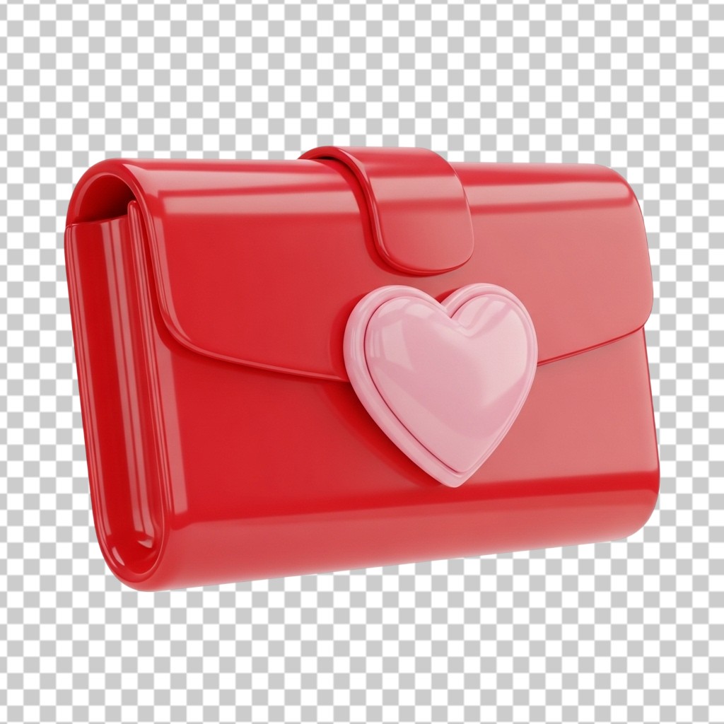 3D Red Leather Wallet with Pink Heart Detail PNG Transparent Background