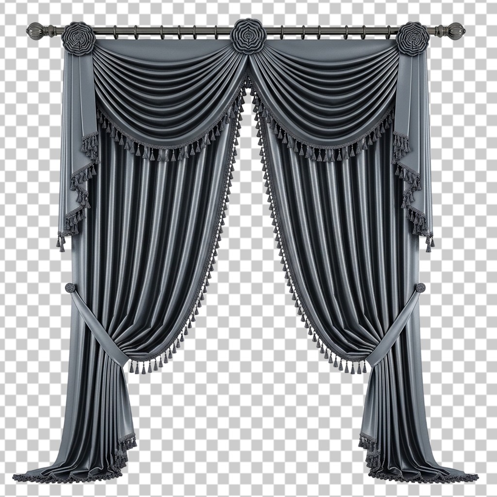 Elegant Dark Grey Drapery with Tassels PNG Transparent Background