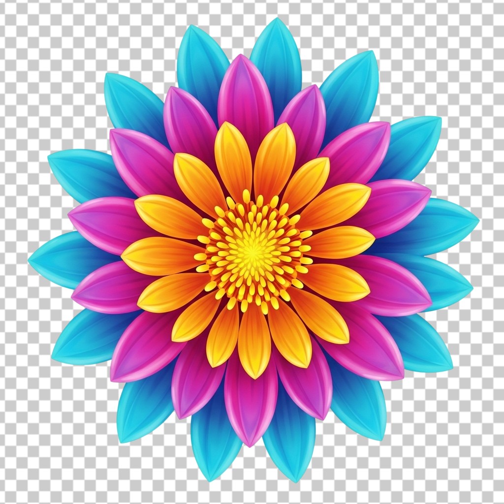 Bright Multicolored Petal Flower Bloom Illustration PNG Transparent Background