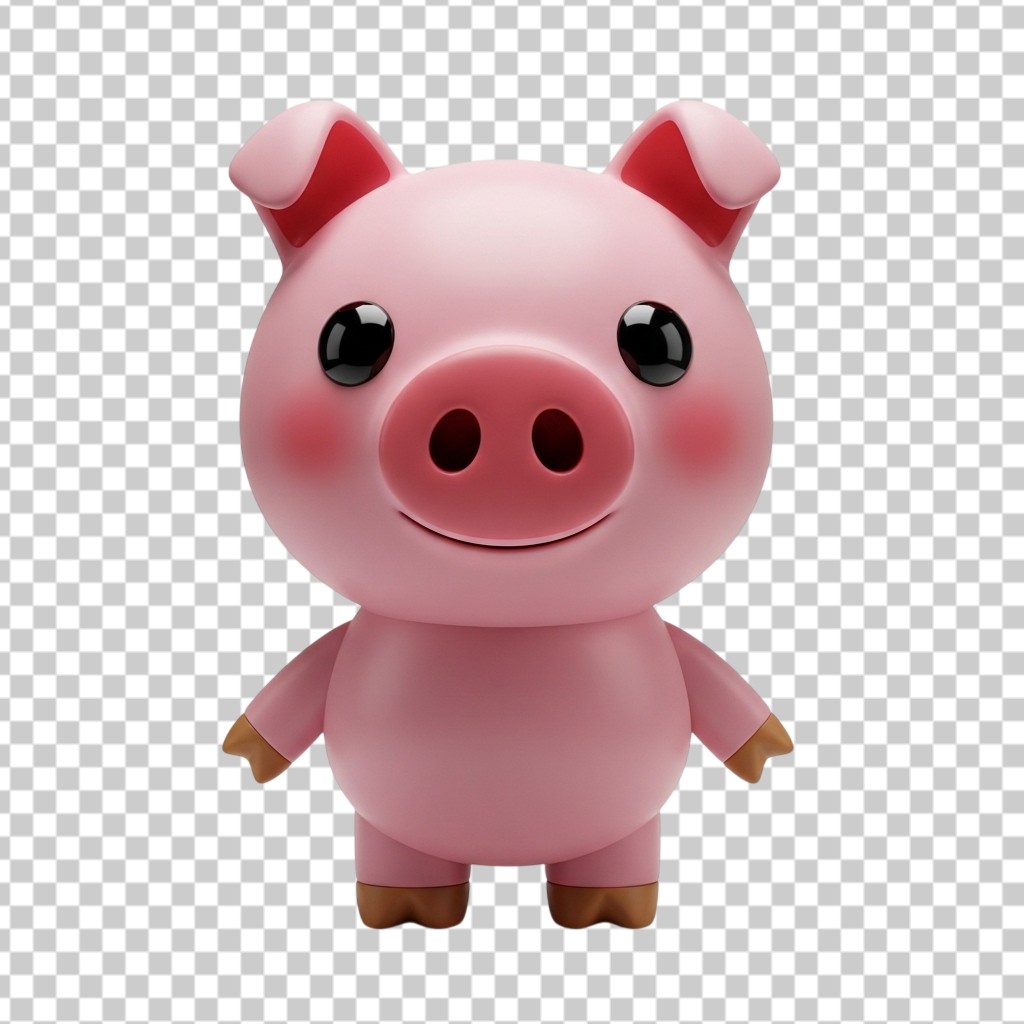 3D Cute Pink Piggy Character Animal Illustration PNG Transparent Background