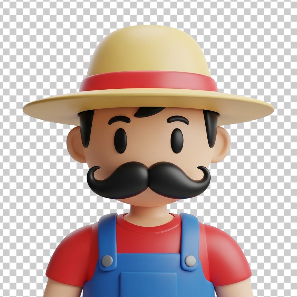 3D Male Farmer Character in Overall and Hat PNG Transparent Background