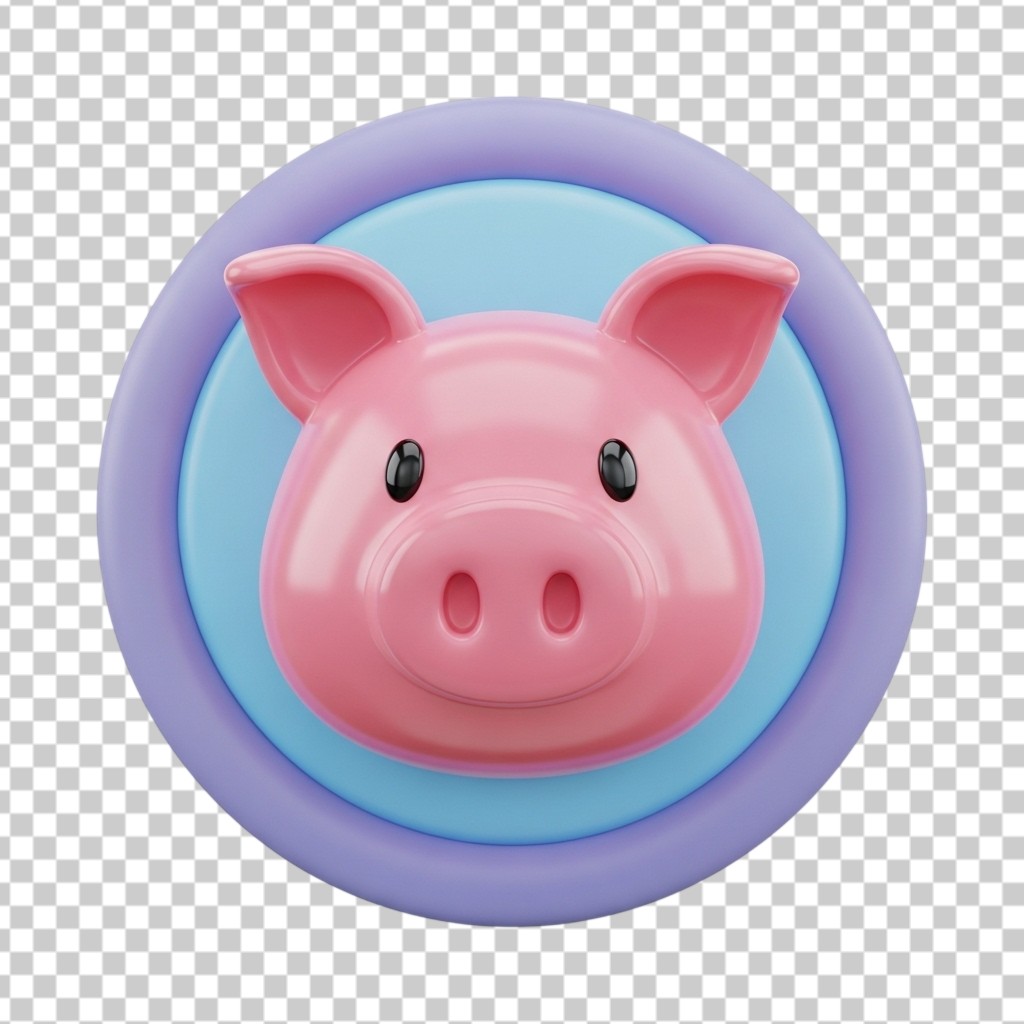 Pink Pig Face Avatar Inside a Blue Circle for Farm Animals PNG Transparent Background