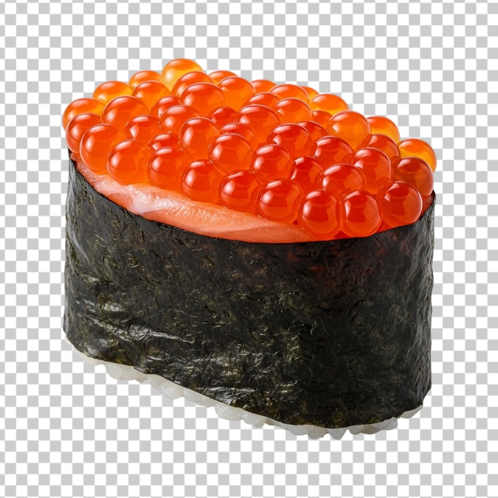 Premium Salmon Roe Ikura Sushi Gunkanmaki on Seaweed PNG Transparent Background