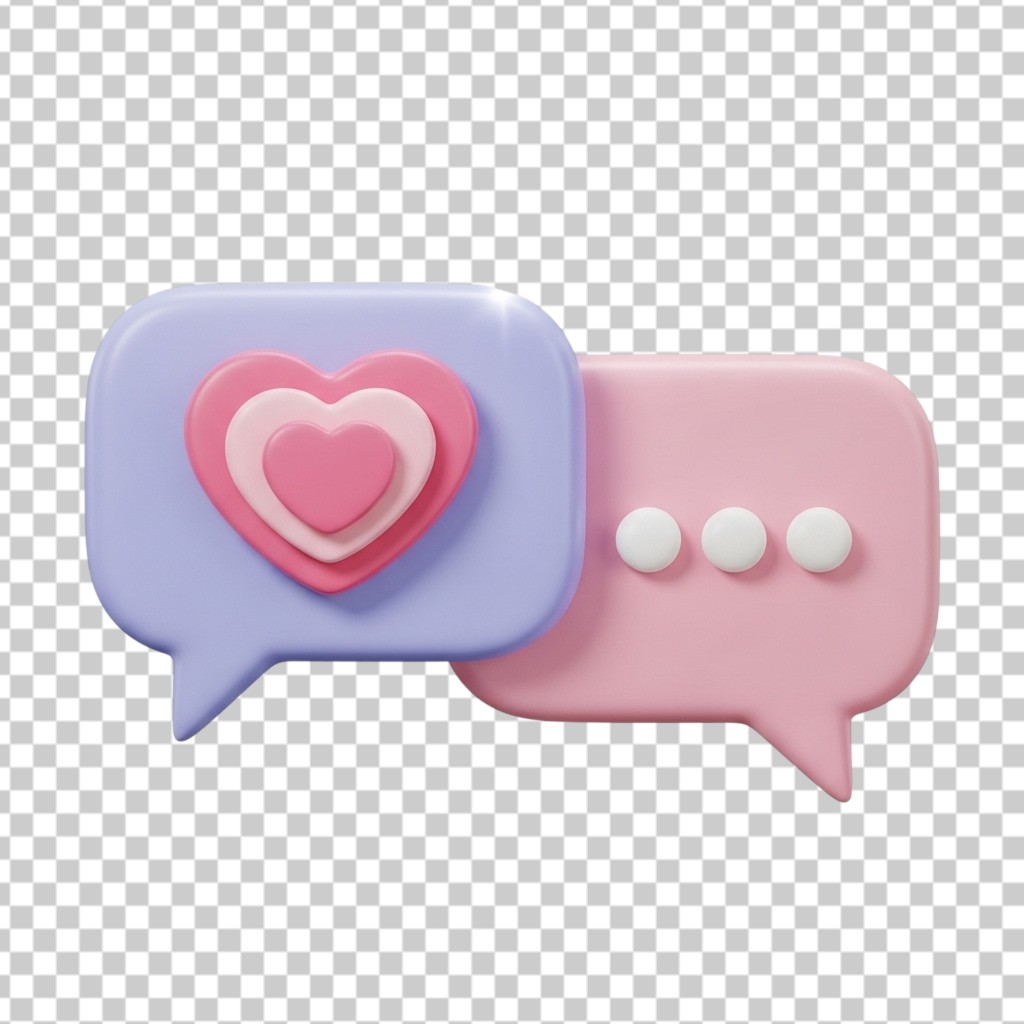3D Pink Chat Speech Bubbles with Heart and Dots PNG Transparent Background