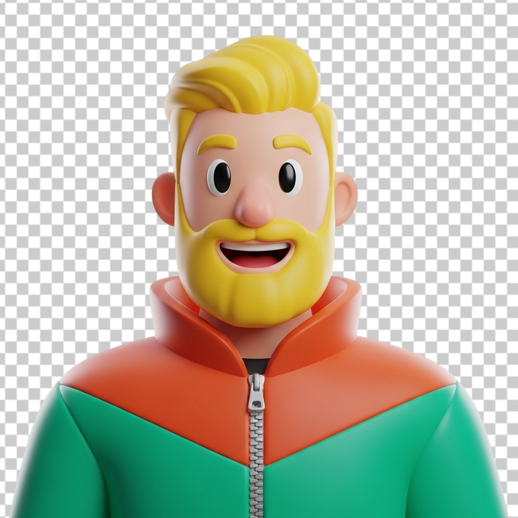 3D Blonde Male Avatar Character with Beard PNG Transparent Background