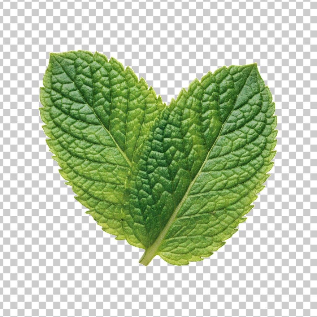 Two Green Mint Leaves in Heart Shape PNG Transparent Background
