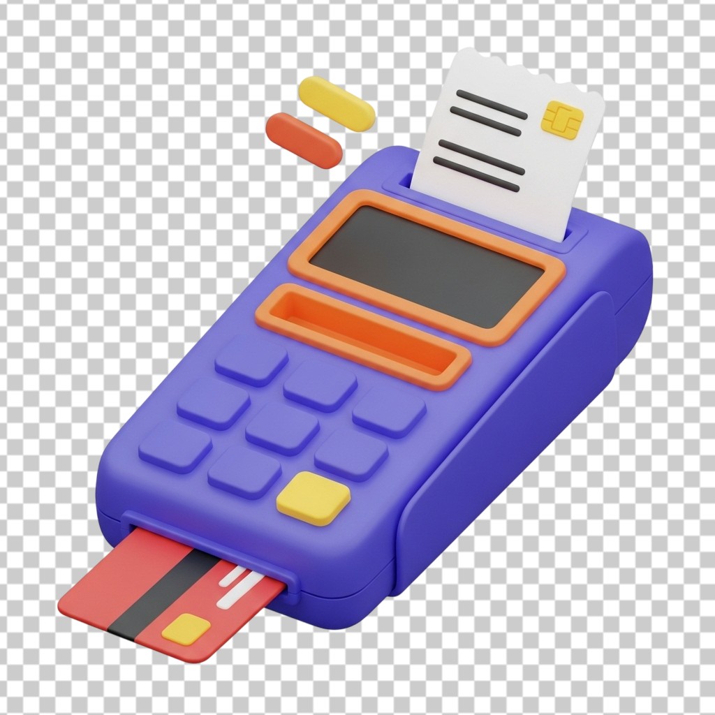 Blue POS Terminal Credit Card Payment Machine 3D Illustration PNG Transparent Background
