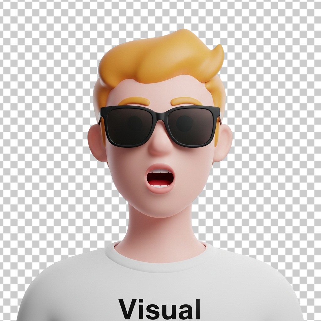 3D Male Character Avatar Wearing Sunglasses with Open Mouth PNG Transparent Background