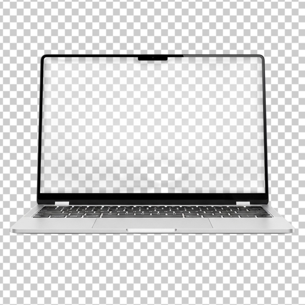 Modern Slim Silver Laptop Computer Open PNG Transparent Background