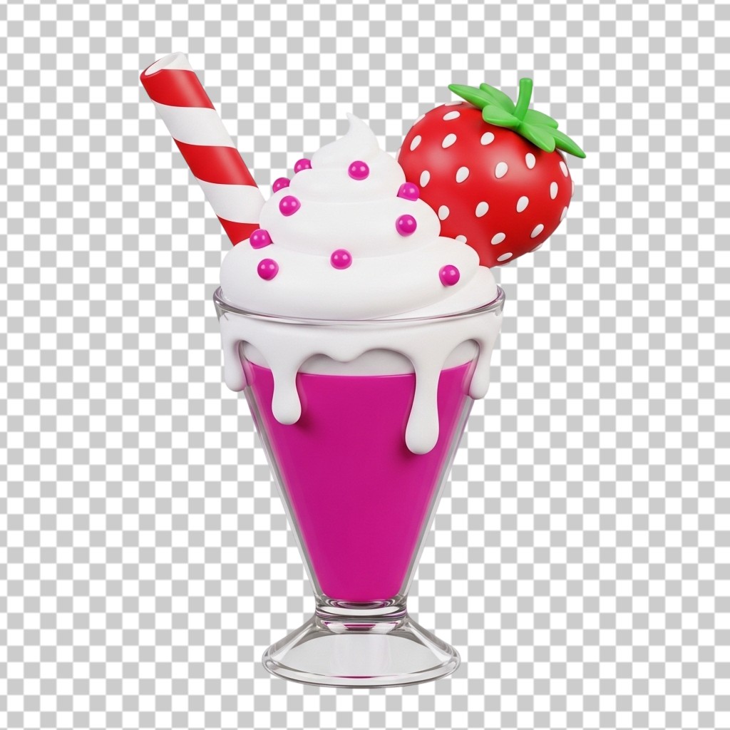 3D Delicious Strawberry Milkshake with Whipped Cream PNG Transparent Background