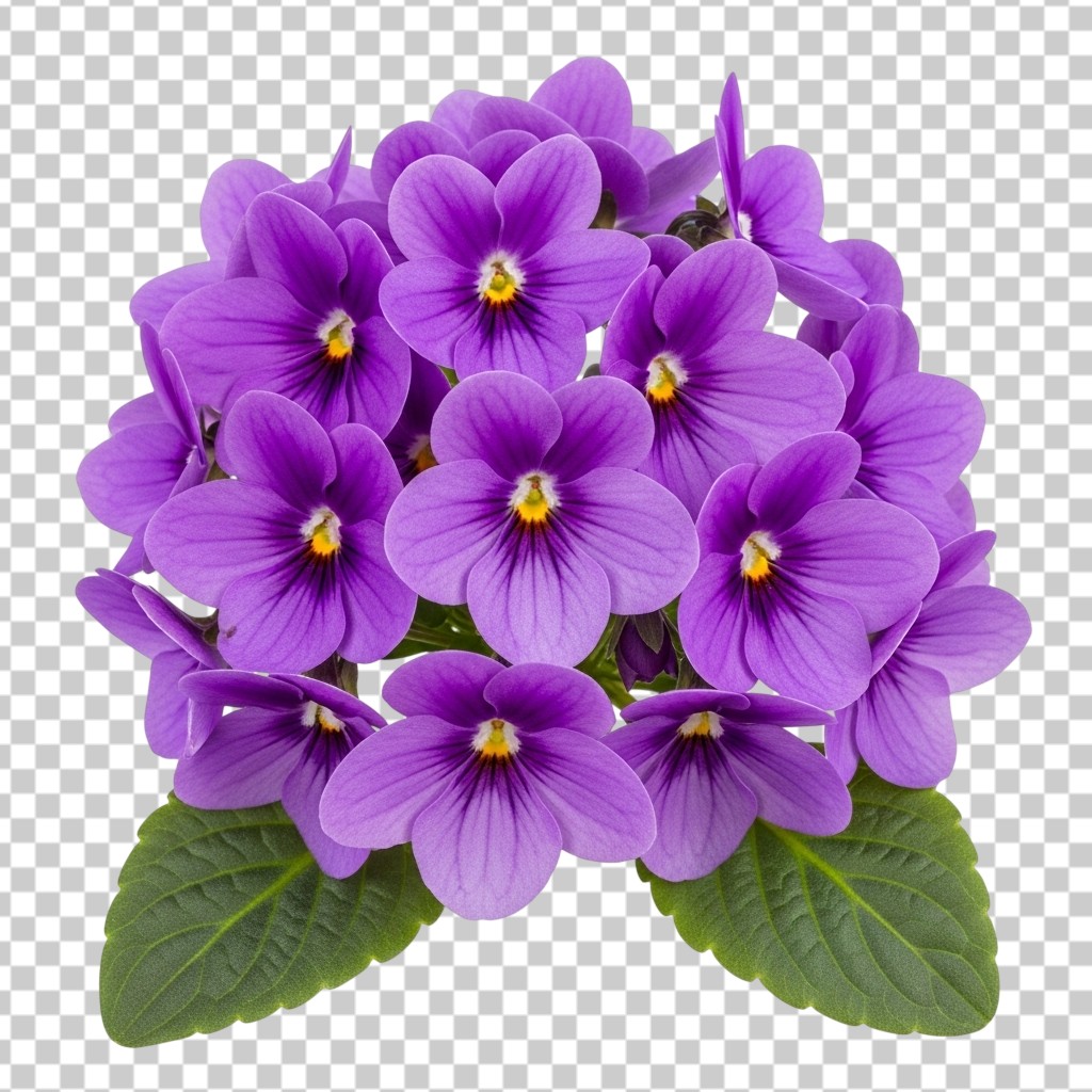 Bunch of Beautiful Purple African Violet Flowers PNG Transparent Background